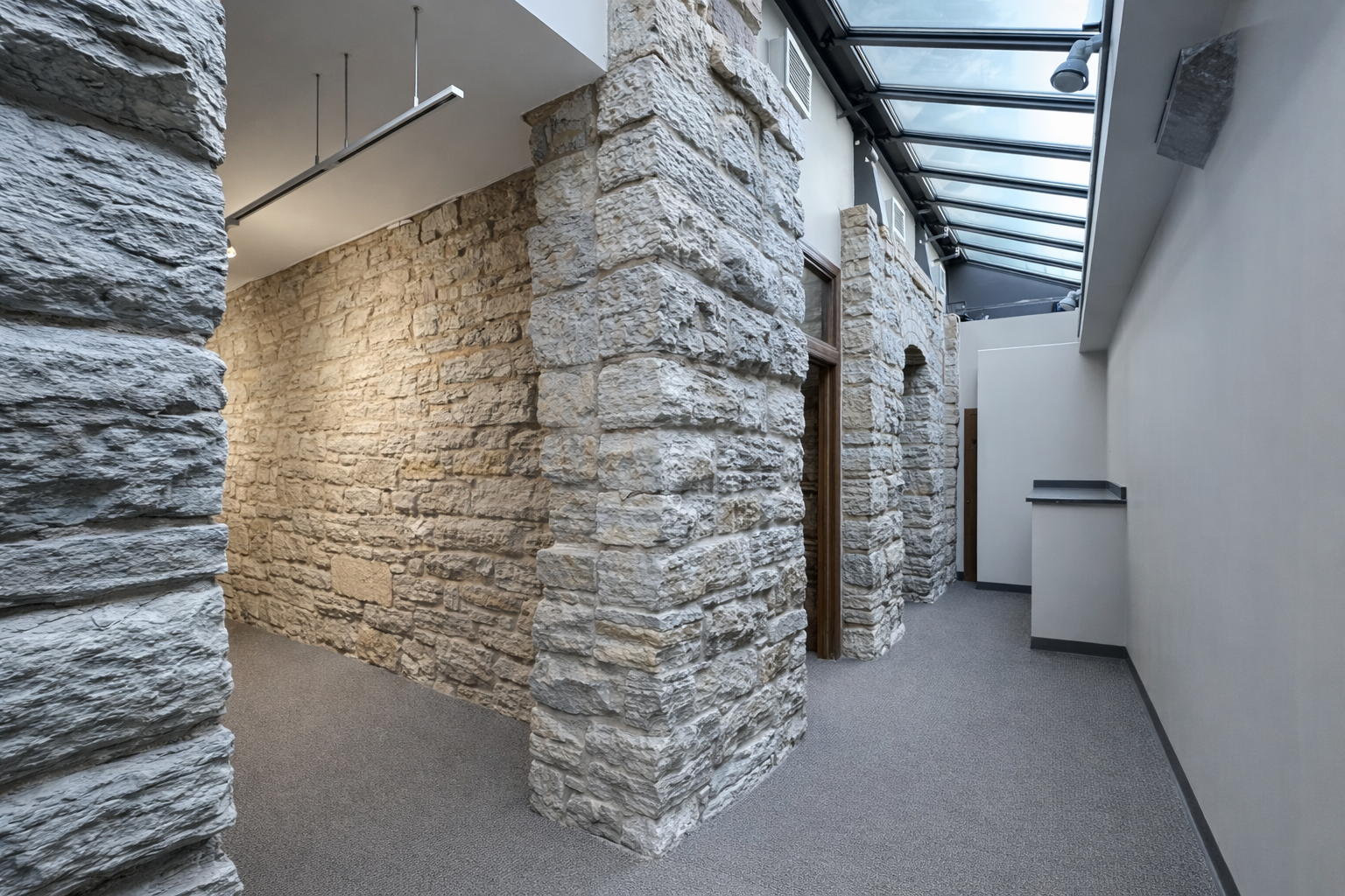 Unique lower level office space in St Paul's Cathedral Hill. Unique exposed stone and skylights make this a rare find.