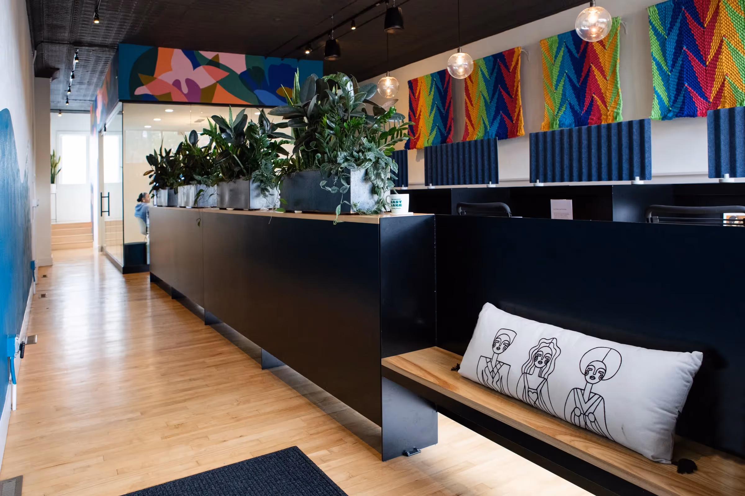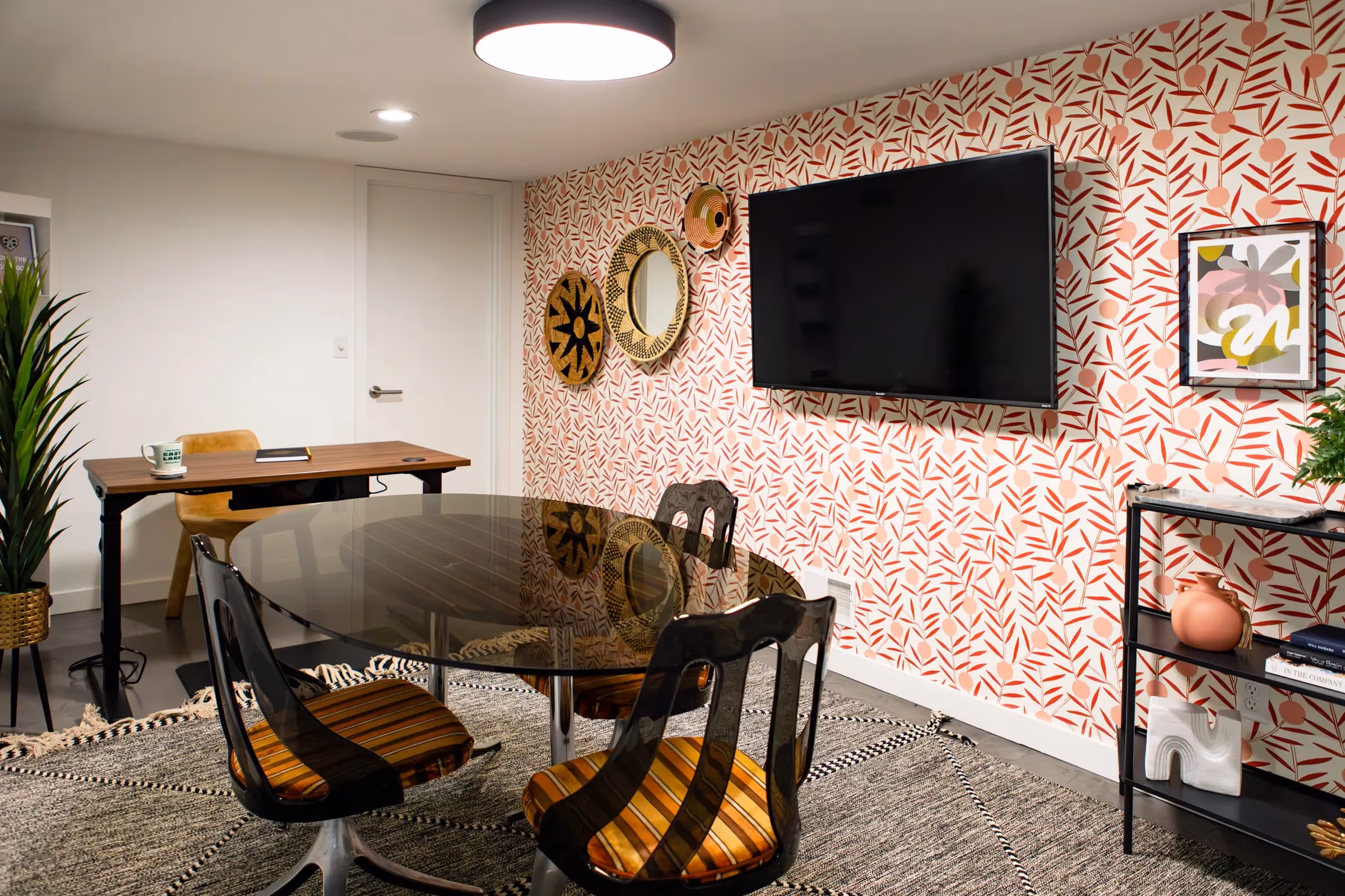 This exceptional stand-alone building offers two floors of beautifully designed, fully furnished office space, totaling 2,640 square feet. The property features an efficient layout with 10 fixed workstations, a 6-8 person conference room, and a prayer/mother’s room. The lower level features one private office, two phone booths, and kitchen ideal for hosting small gatherings or events. With an easy move-in process, this space is ideal for businesses seeking a blend of functionality and creativity.
