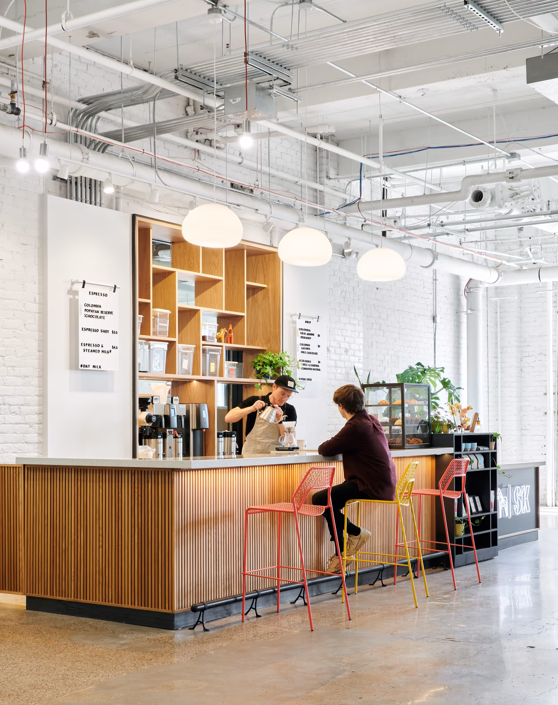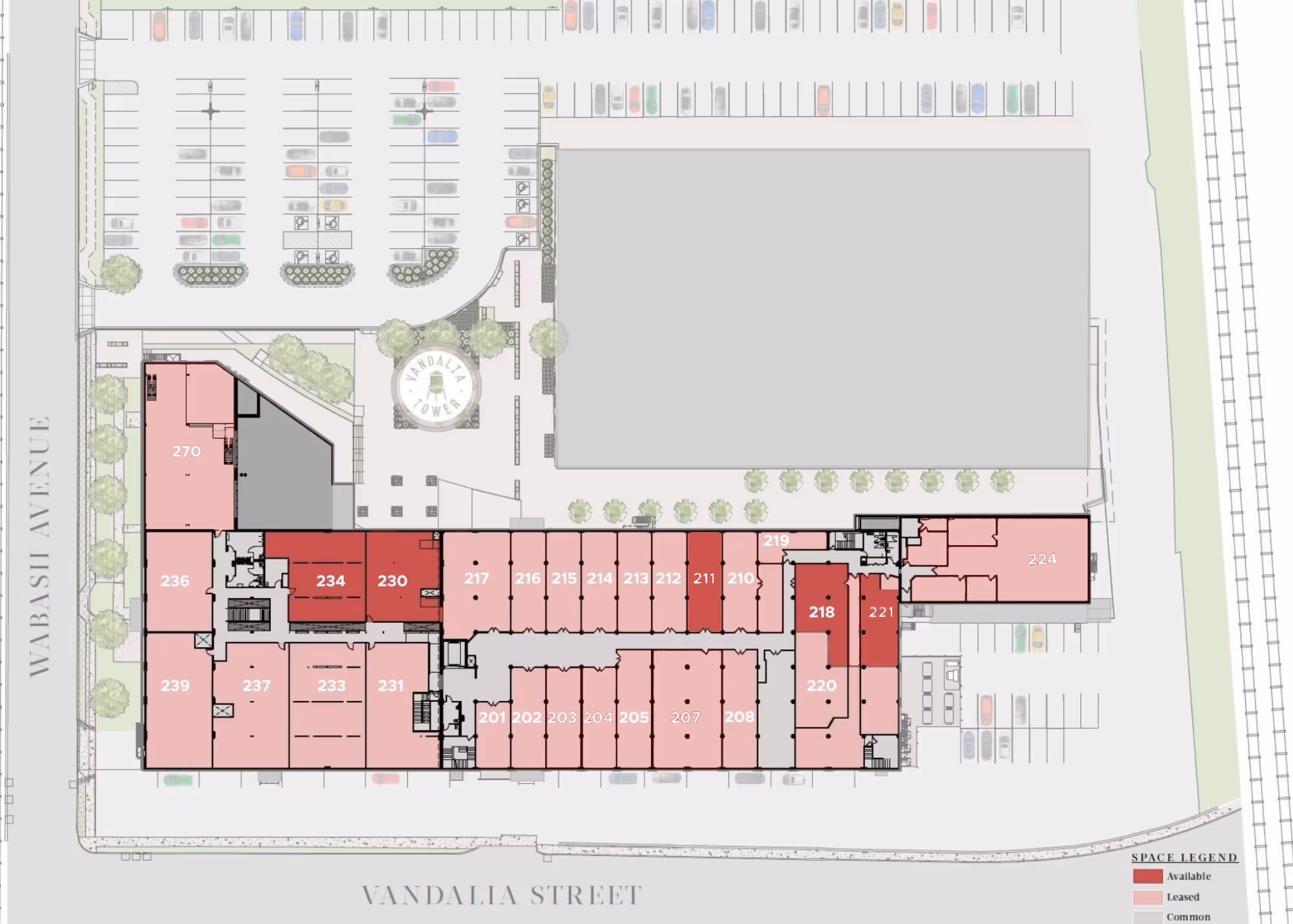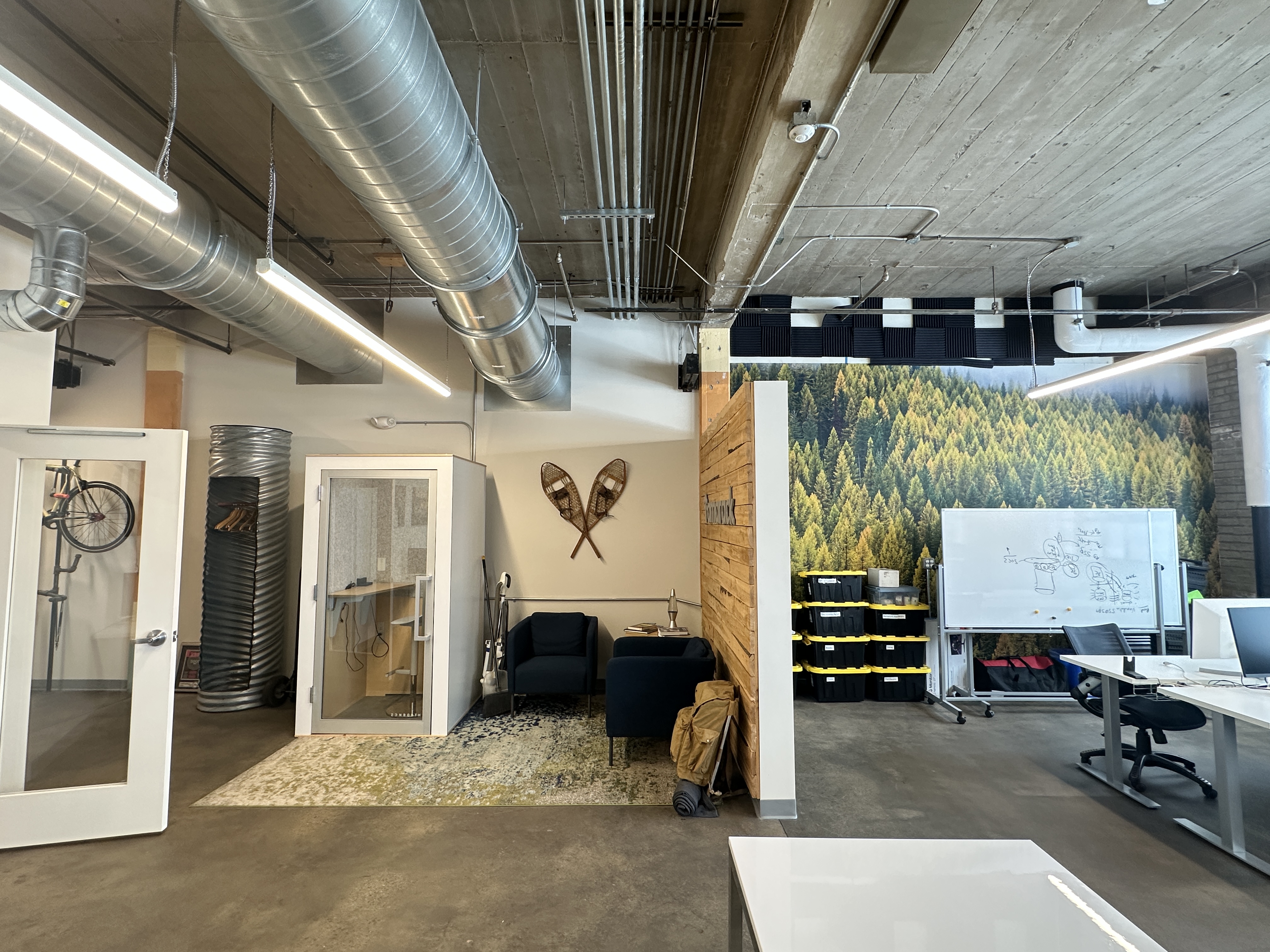 With its unique and esoteric mix of dynamic maker tenants, Vandalia Tower is home to a community of creatives, small businesses, and artists. The entrepreneurial energy is felt at the forefront, with local photography and pops of color from vibrant artwork throughout the building's lobby and common areas. Sunlight pours into all three levels of the building through large industrial windows and skylights, providing a light, airy, industrial feel in combination with white walls, exposed beams, and a mix of hardwood and polished concrete floors.