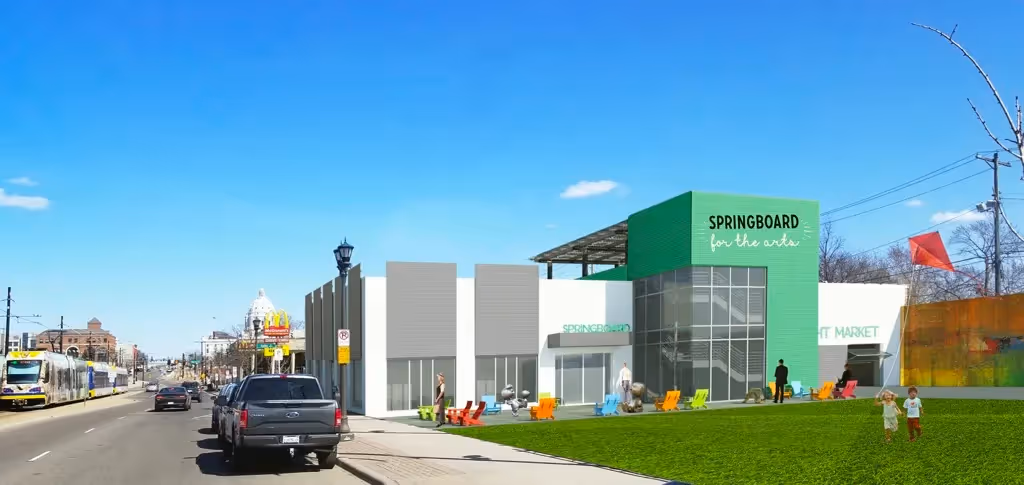Site selection for a visionary client who saw the possibilities of a vacant car dealership to elevate their headquarters into a vibrant community asset